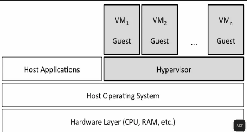 [ Hardware ] ↓ [ Host OS ] ↓ [ Hypervisor ] ↓ [ VM ]