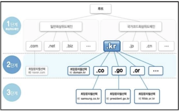 .: Root → ICANN 관리com: TLD → 각 등록기관 관리 (.com, .net, .kr 등)example: 2차 도메인www: 호스트 이름