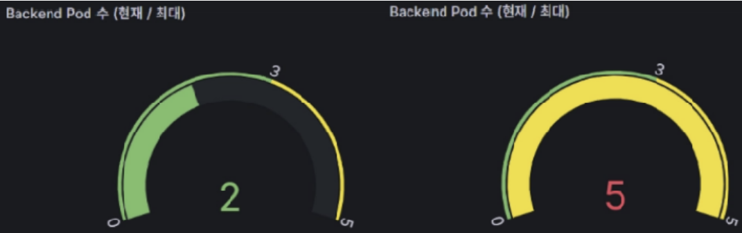 - HPA 대시보드 : Pod 확장/축소 이벤트 타임라인, 목표 메트릭 대비 현재 값